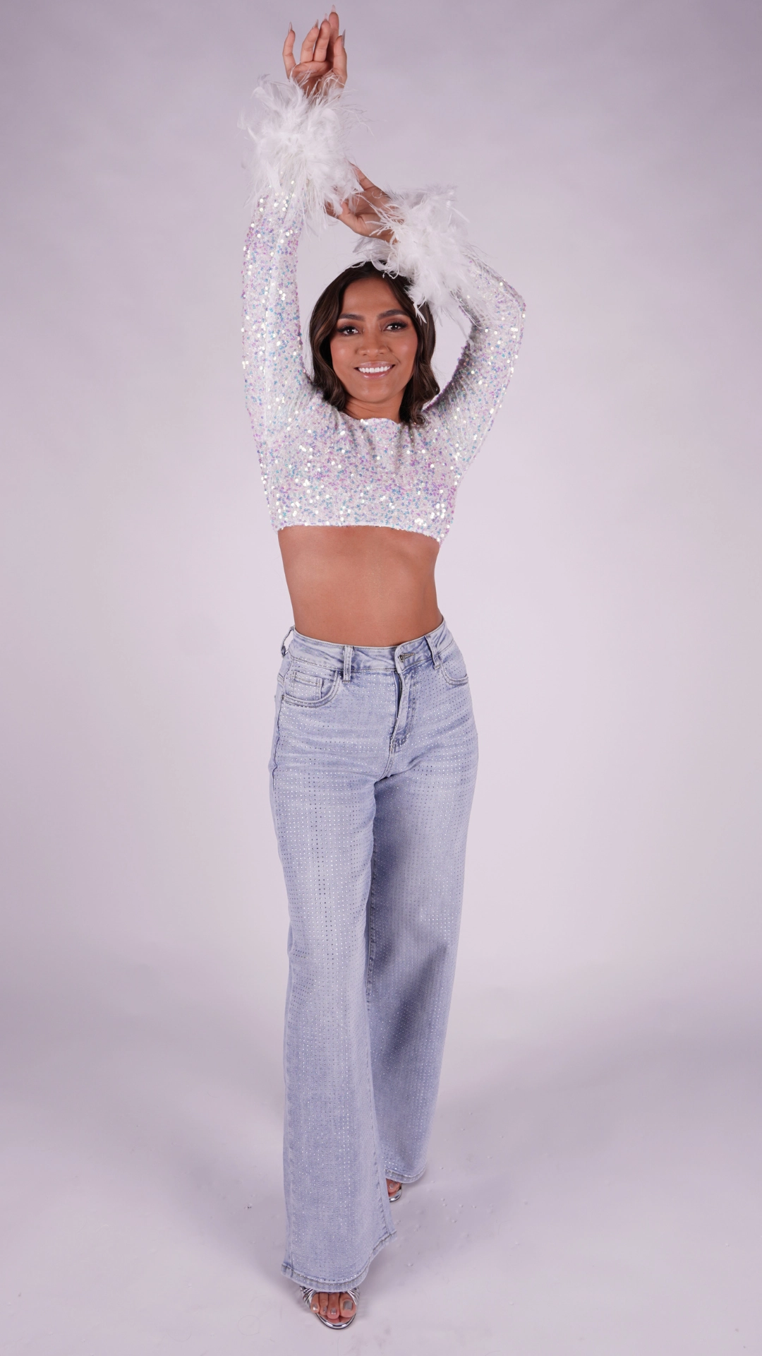 Descriere: Jeansi evazati cu aplicatii stralucitoare